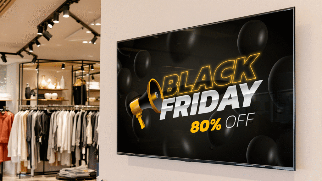 A Black Friday é o momento ideal para o varejo se destacar — e com a mídia indoor digital da Mobiplus, sua comunicação se torna mais ágil, estratégica e eficiente.